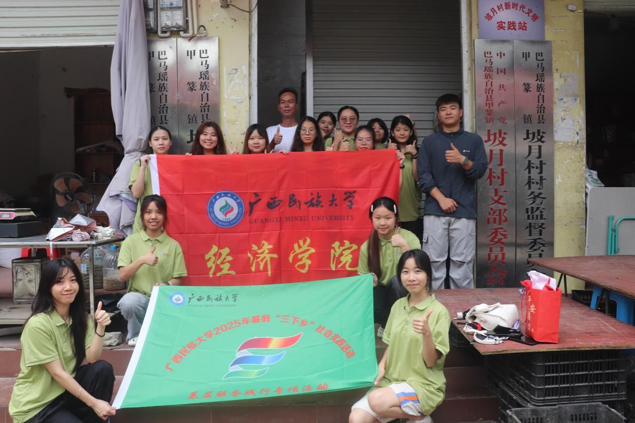 2025年8月8日至8月12日,广西民族大学经济学院团委、学生会和新闻传媒中心共同组建“走进坡月基层,服务振兴之路”社会实践团队,以“青春助力乡村振兴”为主题,奔赴河池市巴马瑶族自治县坡月村,开展为期五天的“三下乡”大学生暑期社会实践活动,细看村落肌理,探寻产业脉络,体察民生暖意,以青春热忱,绘就乡村振兴画卷。