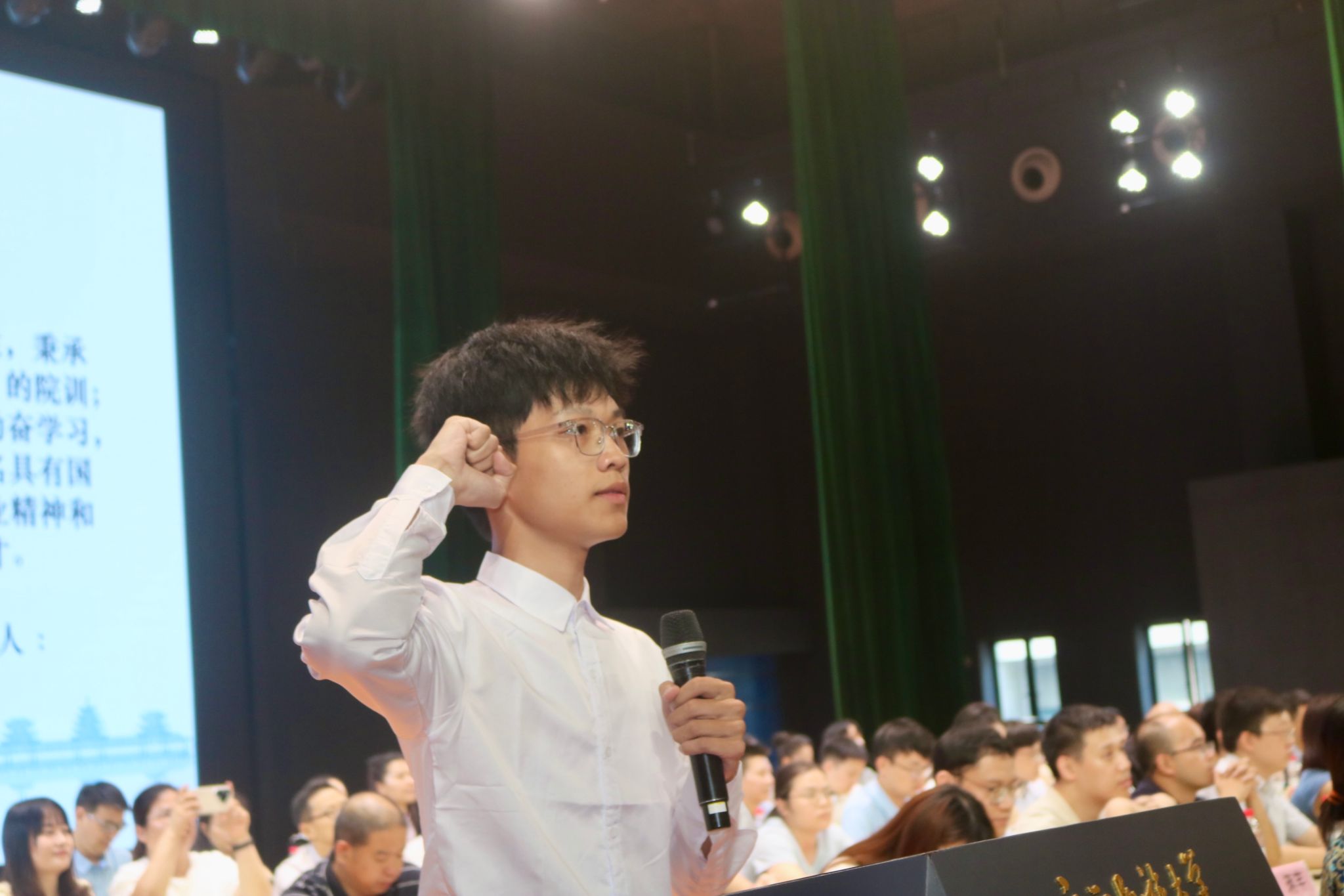 典礼最后,在新生代表2025级金融学1班严梓洋的带领下,全体新生举起右拳,庄严地进行学术诚信宣誓。全体新生向老师鞠躬行礼,表达对老师的感恩;全体老师鞠躬答礼,传递对新生的关爱与期许。