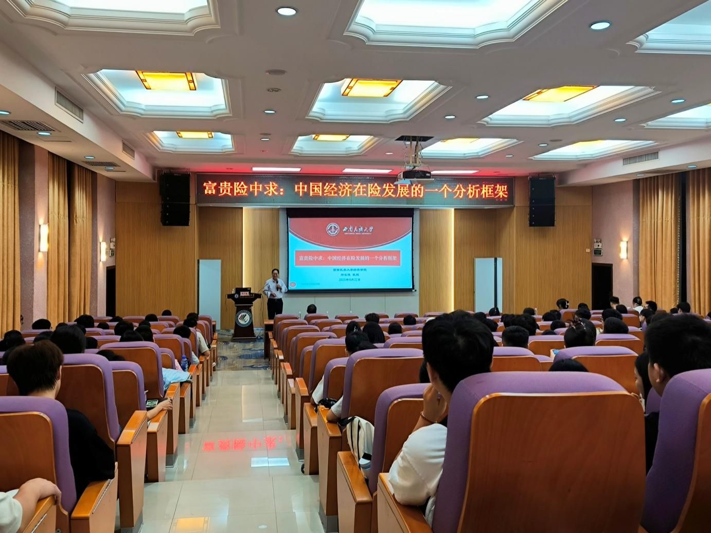 2025年9月22日晚上,我院开展了主题为《富贵险中求:中国经济在险发展的一个分析框架》的专题讲座。本次讲座由西南民族大学经济学院郑长德教授主讲,我院院长胡超主持,2025级全体研究生参加。