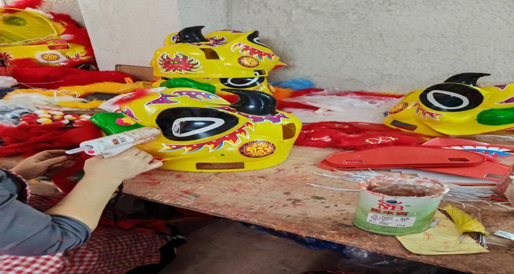 随后,团队探访和记狮鼓生产工厂,了解到工厂依托市内分厂构建生产网络,采用“线上+线下”销售模式,提供定制服务并开发狮舞元素文创产品。成员还亲身体验小狮头制作,感受传统工艺魅力,工厂求新求变的转型思路也为团队提供参考。