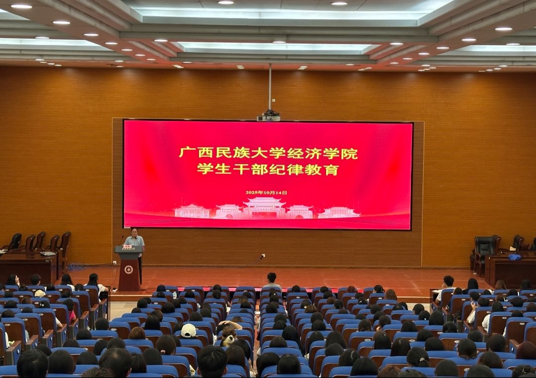 10月14日,经济学院学生干部纪律教育大会在明德楼报告厅举行。会议由经济学院纪委委员、团委书记段莹主持,经济学院团委、学生会、党建工作站、新闻传媒中心全体学生干部参会。