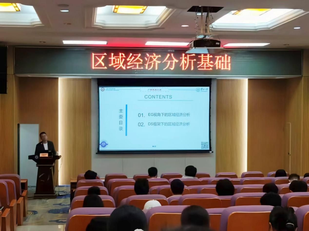 2025年10月31日上午,我院开展了主题为《区域经济分析基础》的专题讲座。本次讲座由云南大学经济学院副教授杨孟禹主讲,经济学院孟庆蛟老师主持,2025级研究生参加。