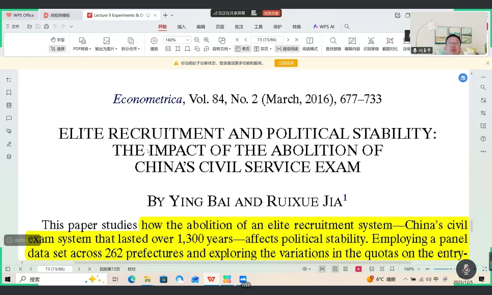 2025年12月5日下午,我院开展了主题为《双重差分理论与应用》的专题讲座。本次讲座通过线上会议平台进行,由山东省金融学类教学指导委员会秘书长刘喜华教授主讲,广西民族大学经济学院院长胡超主持,2024级和2025级金融专硕研究生参加。